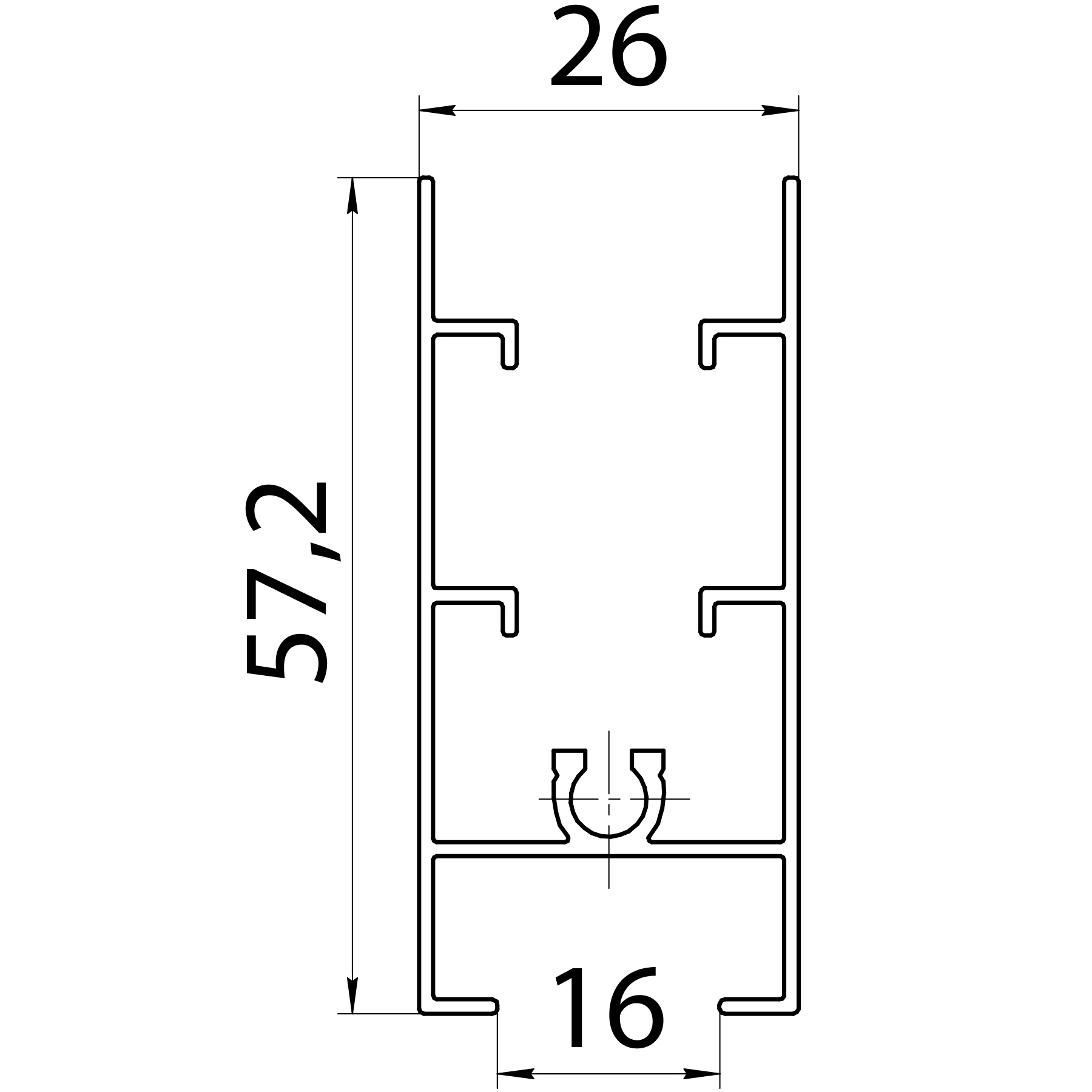 Профиль горизонтальный нижний под 16 мм, 6000 мм (анодированный)